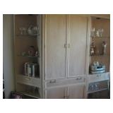 To Highlight-Drexel furniture upholstered sofa and chairs; entertainment cabinet; dining room table with six chairs and two leaves with matching lighted china hutch. Dinette set; king bed; two twin beds; dresser; wheelchair; adult costumes; collectables; much household items; sofa/entrance table; jewelry, etc. Photos are very limited |