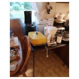 Appliances: Black & Decker Coffee maker, Mr Coffee, Toastmaster Bread Baker, GE Microwave, Hometown Grill & Egg set, West bend Popcorn popper, GE Waffle iron, Sears Buffett Server, Black & Decker Toaster Oven, Sears 7 speed Blender, Oster Hand mixer, Rival Ice O Matic, Sears 90serise dryer and much more….