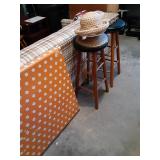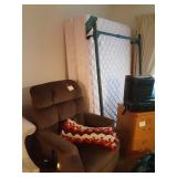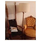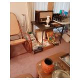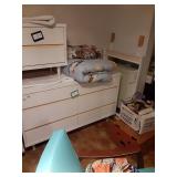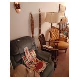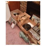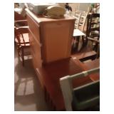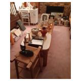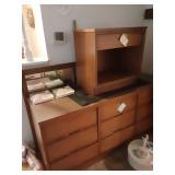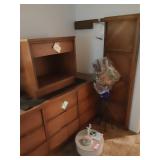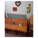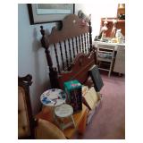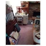Furniture: Midcentury Couch, Midcentury chair, 1 upholstered electric recliner, 1 upholstered manual recliner, Bentwood rocker, 2 upholstered couches, 1 upholstered hide a bed couch, 2 Full sz bed headboards w/ frames both with matching dressers, mirrors & night stands, Trundle bed, Oak table w/2 leaves & 6 chairs, 4 coffee tables, lamp tables, Wooden chairs, Upholstered swivel rocker, 2 Oak stools. 1 Oak stool w/ wicker seat, Wooden upholstered chairs, Oak serving cart, Wooden bookcase, Vintage dresser, Wooden desk w/chair and more…