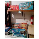 Toys & Games: Vintage 3 Little Pic game, vintage Dr. Kildare Puzzle, Barbie game, Bingo, Stock Market game, Poker Bingo game, Last word, Scrabble, card games, puzzles, stuffed animals, Games, Vintage Huckleberry Hound game, Vintage Donkey Party set, Vintage Magic Answering 8 ball, MacDonald Farm game, Tidily Winks, Vintage Cootie game, Monopoly game, Tripoli, Card games, Life Like Overnight Express Train Station w/ 36”x 54” oval track, Books and more……