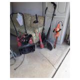 Garage: Craftsman electric blower, Saber Saw, Toro ½” trimmer, Toro electric snow blower 3.25 HP 16”, Black & Decker 2.0 HP electric trimmer, Metal Ladder, Brass Fireplace surround, Vintage sewing machine, Yard tools, Lawn chairs, 2 Huffy Bikes, Karhar skis, poles, shoes, Storage Unit, 2 Huffy three speed bikes and more….