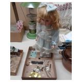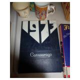 5:45 - (there 'bouts)- MAIN HALL - Antiques / Collectibles – 1930 Letter from Herbert Hoover – C.B. & Sons Chicken Feeder – Nesting Dolls – Penn Baker Supply Scranton Wilkes-Barre Thermometer – Vintage Handkerchiefs – History of Lycoming County Pennsylvania Book, Published 1892 – Vintage Photos – Brass Bucket – Vintage Hats – Sony Radio/Casette Player – Slated Magazine Holders – Wicker Baskets - Gone With The Wind Style Brass Lamp – 1973 Canusarago Year Book – CD's – Kodak Pocket Instamatic Camera – Assorted Vera Bradley Purses – Victoria Tea Set – Queen Elizabeth Tins, Porcelain Pieces and Memorabilia – Lands & Peoples Books – Genesis Mullingar Ireland Bronze Molly Malone as found – Glassware – Bean Pot – Cookbooks – Wooden Doll High Chair – Porcelain Doll & Buttons – Vision Ware w/Lids – Coke & Coca Cola Bottles – Ornate Push Button Telephone – 51 Pieces Chrysanthemum Japan China – Yarn – Sewing Box – Christmas Decor – HP Printer – Cross Cut Paper Shredder – Blade Cage GE Metal Fan – Utensils – Bake Ware – Frigidaire Microwave - Stangl Pitcher & Casserole Dish - and Much More!!
