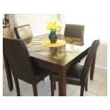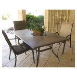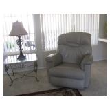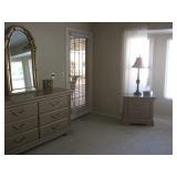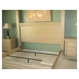 | Dramatic glass top dining room table with six upholstered chairs and a king size 5-piece bedroom set both in blonde tones with a beautiful Italian scroll design. Contemporary dinette set with four chairs; area rug; Kenmore sewing machine; blue wing-back chair; patio table with five chairs; two large original art pieces encased in Plexiglass and a very cool framed Picasso painting scarf! Kitchen and garage are full. Plus we also have a 2006 E-Z Go electric golf cart in great working condition! I'm sorry to say the treadmill has sold. |