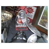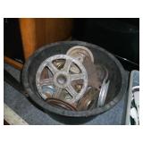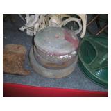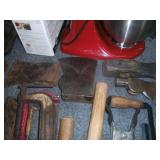 Several Clocks, Collectable Glassware including Waterford Crystal, Fenton, Fiesta, and More, Halloween Items, Pottery Including McCoy and Wedgewood, Art Glass, Prints and Paintings, Signs, Tiara Clock, Old Hub Caps, Frames, Bird Houses, Motor and Pistil, New Music CD’s, Large Flat Screen TV, Vintage Tube Radio, Cast Iron Pot, Oil Cans, Ammo, Router, Rocks and Minerals, Old Pulleys, Hand Saws, Stainless Milk Can 1938, Mixer, Slicer, DC Power Supply, Rotary Tool, Scroll Saw, Vacuum Pump, Deer Head and Antlers, Figurines, Vintage TY’s, Creamer & Sugars, Canisters, Mugs, German Steins, Fiesta Stemware, Bake Ware, Bell Jar Clocks, Candles, Large Collection of Vintage Table and other Lighters, Insulators, Alligator Head, Electric Box, Drift Wood, Knives and Swords, Cook Pots, Large Food Dehydrator, Organizers, Several Heaters and Fans, Bird House Lamp, Vintage Double Ice Tray, Fire King Mixing Bowl Set, Belt Sander, Circular Saw, Multi Ladder, Metal Table, Books, Travel Kits, Apple Peeler, Cookie Jar, CD Player, Cake Pans, Axes, Picks, Sledge Hammer, Several Vices, Machetes, Cutting Torch, Kitchen Aid Table Mixer w/ Meat Grinder, Hand Tools, Canning Jars, Pressure Cooker w/ Canning Supplies, Ply Wood, Drill Press, Grinder on Stand, Mini Dress Form, Ladies Shoes and Coach Purses, Dolls, Throw, Battery Organizer, Vintage Childs Walker, Stools, Metal Shelves, Coat Tree, Rocking Chair, Rolling Metal Stand, Lawn Mower, Microwave, Bucket of Pulleys, Wood Heater, Hose on Reel, Grinding Wheels, Vintage Gas Heaters, 3’ Rail Road Track Anvil, Have a Heart Trap, Large Glass Bottles, Lots and More, With Our Four for a Dollar / Free Tables.
