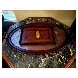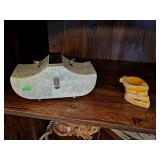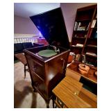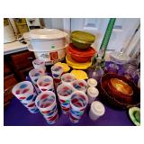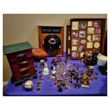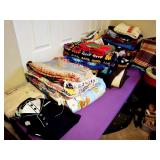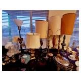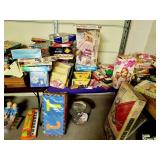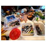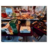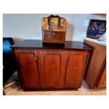 Lots of 1970s / Mid Century Modern / MCM Items, Tchotchkes, Kitchenware, Furniture Mid Century Modern Extensole VIntage Mini Bar Cabinet Mid Century Modern HiBack Upholstered Rocking Chair Recliner Vintage 33" Torchiere Stiffel Brass Eagle Lamp w/ Original Milk Glass Shade Lots of Vintage Items Inc. Electronics In Original Boxes Cabbage Patch Kids In Original Boxes Unique Antique Furniture Pieces - bubbled glass Vintage 1996 Limited Edition Baileys Winking Face Blue Eye Cup Mug 6 oz Snow White Vintage Metal Lunchbox Lunch Box Pail, Aladdin Walt Disney 1855 Email de Limoges I. Godinger 7&1/2" Salad or Dessert Plate New In Box Set of 4 Hall's Superior Quality Kitchenware Eureka 6 inch Bowl in Homewood Pattern - 3 sizes Kuchestolz 6-Piece Precision Crafted Stainless Knife Cutlery Set /Sharpener New In Box