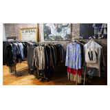 Women’s Shoes are size 9, 9.5, and 10, Women’s clothing sizes ranges from Small to XXL, and a small collection of men’s clothing ranging from size XL to XXL.