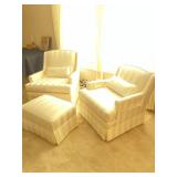 2 Formal White Upholstered Chairs & Ottoman
