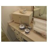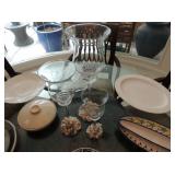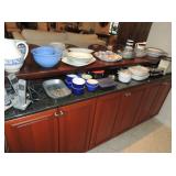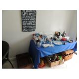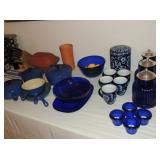 Waterford Crystal, Lladro figurines, Hand blown art glass, Crystal decanters, Large amount of cobalt blue Glasswares, Portuguese ceramics, Emile Henry France, Pyrex, Corningware, Bombay ceramics, Crate & Barrel Epoch Blueline China set, Misc stemware, Colored glass, Wine glasses, Teapots, Haviland Limoges France, Hutschenreuther Germany, Lynns fine china, Hand signed pottery pieces, Pier 1 Mandarin China, Galaxy by Sakura China, Sic stoneware, Cake plates and pedestals, Vases, Decorative chargers, Porcelain figurines, Crystal ice bucket, Champagne flutes, Antique tea and coffee service,
