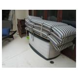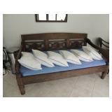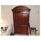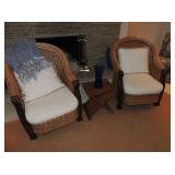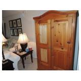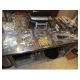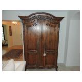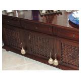 Dark stained dining table with distressed leather seating, Bombay entry table, Childress custom white sofa, Childress custom white upholstered arm chairs w/ matching ottomans, Hollywood regency custom upholstered side chair, Heavy wrought iron and glass coffee table, Hekman inlaid side table, Heavily carved and distressed large armoire, Oversized custom Childress sofa, Matching blue and white upholstered accent chairs, Several pcs of quality wicker and rattan indoor furniture, Wicker and wrought iron bar stools, Dark console table w/ carved accents, Oversized decorative coffee table. King size pineapple and wicker themed headboard and footboard with pillow top mattress set, Vintage oversized cane back arm chair with ottoman, side table w/ carved pineapple accents, Round side table w/ wicker and rattan accents, Heavily carved entertainment armoire, Wrought iron day/trundle bed, Small decorator table, Matching white side tables, Oversized white upholstered armchair, King size poster bed with carved pineapple accents and pillow top mattress set, Matching Ethan Allen side tables, Cowhide zebra print end of bed bench, Carved and distressed armoire, Large wicker Bombay chest, Large wicker hamper, Entertainment Flatscreen TV console cabinet, Oversized distressed dark stained coffee table and matching side table, Matching upholstered sofa and love seat, Sofa table, Rolling desk chair, Solid pine armoire, Book shelves, Heavily carved and distressed oversized Indonesian day bed, Rustic apothecary chest, Small game table w/ wicker chairs, Large amount of quality wicker and rattan outdoor furniture, Misc accent tables and chairs, Frontgate outdoor wicker chase loungers, tables and chairs, Heavy wrought iron and glass entry/sofa table, Lexington Tommy Bahama armoire, Large brushed steel bakers rack,