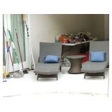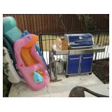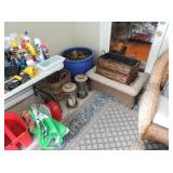 Quality linens, Ladies designer footwear size 11, Ladies handbags and purses, Quality bedding, Wine drinking accessories, Spices, Several pieces of Le Cruset cookware, Cobalt blue canisters, Misc quality cookware, Kitchen utensils, Kitchenwares, Stainless steel trashcan, Collection of cookbooks, Designer sunglasses, Pool toys, Garage and household chemicals. Pots and planters, Outdoor storage containers, Ladder, Ice chest, Tools, Lawn and garden supplies, Sporting goods, Wall mounted fountain, J. A. Henckels cutlery set, Black W. W. Kimball Co. baby grand piano, Jewelry, Ladies Raymond Weil wrist watch, Plush animals and TONS MORE!!!