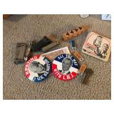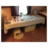 Highland House Loveseat, (2) La-Z-Boy Rocker Recliners, Lift Chair, Drop Leaf Table, (2) Walnut Desks, Hammond Organ (Large Size with Foot Pedals), End Tables, Small Stands, Paintings, Signed Prints, Chalk Pastels, Bird Prints, Cherry Drop Front Secretary, Yamaha KeyBoard, Old Books, Bookcases, Office Supplies, File Cabinets, Lamps, Wall Art, Mirrors, Bottle Collection, Old Knives, Old Pins, Ribbons, Patches, Military, Political, Large Rock & Mineral Collection Containing Fossils, Shells, Bones, Crystals, Petrified Wood, Flint, Indian Artifacts, Flushing Stones, Arrowheads, Old Tin Toys, Trucks, Texaco Truck, Buddy "L", Structo, Hubley, Old Games, Old Glass & Porcelain, Pottery, Marbles, TVs, Misc. Electronics, Radios, CDs, DVDs, Record Albums, Full Kitchen Assortment Including Cookware, Dinnerware, Bakeware, Small Appliances, Vintage Pieces, Frigidaire Refrigerator, Small Gas Cookstove, Portable Dishwasher, Chestnut Farm Table, Cookbooks, Corningware, Pyrex, Sets of China, S/P Flatware, Crocks, Maytag Washer & Electric Dryer, Early White Painted Primitive Cupboard, 1950s Cutlass Bike, Watches, Sewing & Craft Supplies, Linens, Bedding, (2) Full Beds, Nightstands, Chests & Dressers, Large Amount of Costume Jewelry, Oil Lamps, Full Garage Including Coleman Air Compressor, Weedeater, Pushmower, Trash Cans, Wheelbarrow, Table Saw, Bench Grinder, Vise, Hand Tools, Garage Supplies, "Like New" Toro 924 9 Horsepower Shift Snowblower, Ladders, Weed Trimmers, Garden Tools, Lots of Unlisted Items!