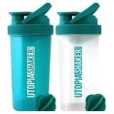 Utopia Home 2-Pack 28-Ounce Fitness Sports Classic Protein Mixer Shaker Bottle - (All Teal & Clear/Teal)