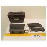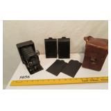 5002 Exakta VX 35mm SLR camera w/ prism finder, Zeiss Jena Tessar 50mm 2.8 lens 5003 Vivitar flashes incl. 285 HV, (3) 283, 281, & accessories 5004 Graflex Speed Graphic 4x5 press camera w/ Optar 135mm 4.7 lens 5005 Hasselblad 500C/M body w/ metered prism finder & A12 back 5006 Exakta VX w/ Tessar 50mm 3.5, Telemegor 250mm 5.5, bellows & other accessories 5007 Minolta Color Meter II light meter w/ case & manual 5008 Nikon FM 35mm SLR camera w/ Nikkor 35mm f:2 lens 5009 Hasselblad 500EL/M body w/ A12 back, charger, cap, and manual 5010 Nikon Nikonos IV-A underwater camera w/ 35mm 2.5 lens 5011 Sinar F 4x5 monorail w/ 210mm & 90mm lenses, extension, case, etc. 5012 Hasselblad Zeiss Sonnar CF 150mm f/4 T* lens 5013 Nikon AF-Nikkor 35-70mm 3.5=4.5 lens (with free N4004 body) 5014 Sekonic digital light meter, Gossen Luna-pro light meter & variable angle attachment 5015 (10) Lisco Regal II 4x5 film holders 5016 (2) Hasselblad A12 backs, Hasselblad 100 polaroid back 5017 Kodak 1A Autographic Brownie folding camera 5018 Quantum & Norman flash accessories, radio slave, etc. 5019 Nikon F3 HP body w/ MD-4 motor drive 5020 Hasselblad flash grip, extension tubes, bellows lens shade 5021 Nikon Speedlight SB-28 & SB-24 flashes w/ cases 5022 Nikon Nikkor 135mm 2.8 & 180mm 2.8 lenses 5023 Nikon caps, flash shoes, eye-pieces, filter 5024 Large lot various brands filters, adapters, brackets, grip 5025 Nikon L35AF point & shoot camera with manual & box 5026 Polaroid back for Nikon F cameras, Nikon bellows, grip, remote, book 5027 Ricoh "35" and Aires 35-IIIL rangefinder cameras 5028 Rolleicord TLR camera w/ Xenar 75mm 3.5 lens 5029 Rochester Cycle Poco No 1 camera 5030 Tower 22 (Asahiflex IIA) SLR camera w/ Takumar 58mm 2.4 lens 5031 Minolta SRT SC-II 35mm SLR camera w/ Rokkor-X 45mm & Hanimex 28mm lenses 5032 Canon AE-1 35mm SLR camera w/ FD 50mm 1.8 lens 5033 Brown Kodak Beau Brownie Art Deco box camera 5034 Agfa Ansco & Kodak Vest Pocket mod. B folding cameras 5035 Kodak Carousel 800 slide & Instamatic M85 movie projectors 5036 National Photocolor Lerochrome One Shot camera Daylight Model 5037 Canon TL 35mm SLR camera w/ FL 50mm 1.8 lens 5038 Brown No. 2 Brownie & black No. 0 Brownie Kodak box cameras 5039 Graflex Speed Graphic US Army Signal Corps KE-12 version 5040 Olympus Six and Zeiss Nettar folding cameras 5041 Kodak Medalist II camera with orig. box & lens cap 5042 Kodak Retina I type 010 & type 126 cameras 5043 No. 4 Panoram Kodak model C panoramic camera 5044 Lot of filters 5045 Canon FD 50mm 1.8 lens, & 2 Canon A-1 bodies for parts / repair 5046 Graflex Century Graphic "Baby Graflex" complete outfit 5047 Rochester 5x7 Improved Empire State View Camera 5048 3 large antique shutters 5049 Olive Drab Argus A 35mm camera 5050 (2) Nikon Nikonos II underwater camera bodies 5051 Konica Koni-Omega Rapid rangefinder med. format camera 5052 Kodak Vest Pocket & Vest Pocket Mod. B folding cameras 5053 Chinon Pacific 12SMR Direct Sound Super 8 movie camera 5054 Widelux F7 swing lens 140 degree wide angle panoramic camera w/ orig. box 5055 Kodak wood developing tank 5056 Ernemann folding plate film camera and holders 5057 Mamiya RB67 complete outfit 3 lenses, 5 backs, etc. 5058 Antique street camera 5059 Kodak No.2 Folding Autographic Brownie, No. 3A Folding Brownie cameras 5060 Kodak Ordinary (A or B ?) wood camera c. 1895 with case 5061 Brown & Gray Kodak folding cameras 5062 Unmarked wood view camera with no back (4 x 5 ?) 5063 Graflex Graphic View 4 x 5 monorail view camera 5064 Graflex Combat Graphic 45 4x5 camera 5065 Kodak No. 4 Bulls-eye special camera 5066 Black Rollei 35 S compact 35mm camera w/ case, flash, filter, & cap 5067 No. 1A Folding Pocket Kodak camera w/ red bellows 5068 Voigtlander Bessamatic outfit w/ 3 lenses in orig. boxes 5069 Kodak No. 3 Folding Brownie & Vest Pocket Hawkeye cameras 5070 Ricohflex model VI TLR camera w/ wood box 5071 Vintage Kodak & Rochester developing chemicals, Kodak graduate 5072 Kodak Recomar 33 folding camera 3 1/4 by 4 1/4 inch 5073 Kodak Anniversary, green Rainbow Hawkeye, & No. 0 Brownie box cameras 5074 Rolleiflex TLR camera w/ damaged 2.8 Xenotar lens 5075 (2) Kodak Pony 135, Brownie Starflex in box 5076 No. 1 Panoram Kodak panoramic camera w/ case 5077 Kodak Retina III S & Retina-Tele-Xenar 135mm f:4 lens 5078 Victor flash lamp in box, Victor flash powder jar & tube, Kodak flash cartridges 5079 Kodak Reflex and Wirgin TLR cameras 5080 Chrome Rollei 35 Germany w/ manual 5081 Braun Paxette & Foth Derby cameras 5082 (2) Antique brass shutters, & a Gundlach Pancratic Tele-photo lens 5083 Kodak Six-20 Duo & Flash Bantam folding cameras 5084 Mickey Magic Kodak & Budweiser can cameras 5085 Eastman Kodak clear & brown glass bottles, & Kodak Candle Lamp in box 5086 5 plastic cameras, some with boxes 5087 Kodak No. 3A Autographic & No. 1 Kodak Jr. folding cameras 5088 Voigtlander Vitomatic I & Vitomatic IIa cameras 5089 Folmer & Schwing #8 Cirkut Outfit w/ RB Cycle Graphic 6 1/2 x 8 1/2 5090 R.O.C. View 5 x 7 view camera w/ Zeiss Anastigmat Series V lens 5091 3 Kodak box cameras incl. Anniversary Kodak 5092 Canon EOS A2 camera w/ motor drive & AF 70-210mm 3.5-4.5 lens 5093 Zeiss Box Tengor & Ferrania Rondine cameras 5094 Agfa Billy Record & Zeiss Nettar 515/2 folding cameras 5095 Pentax 6x7 67 med. format SLR w/ 90mm, 105mm, & 135mm lenses 5096 Girl Scout Kodak folding camera 5097 Canon EOS Rebel S w/ EF 50mm 1.8 lens 5098 Agfa Standard folding plate-film camera 5099 Ensignette No. 2 & Kodak Retina I (type 119) 5100 Canon FTb camera with FD 50mm 1.8 S.C. lens 5101 2 4x5 backs for larger view camera 5102 Canon EOS 10s, Eos Elan, & T70 bodies 5103 J. Richard Glyphoscope type 1 stereo camera w/ case & backs 5104 No 1A Pocket Kodak & No. 2-A Folding Cartridge Premo folding cameras 5105 Boy Scout Kodak folding camera 5106 Nimslo 3D camera w/ flash & manual 5107 Agfa Optima 500 w/ flash & Univex Meteor cameras 5108 Nagel Vollenda & another German folding camera 5109 Rolle