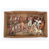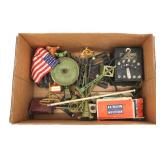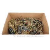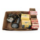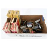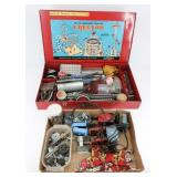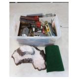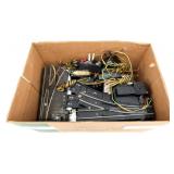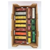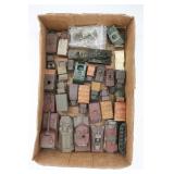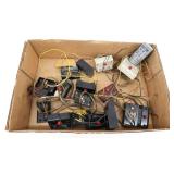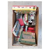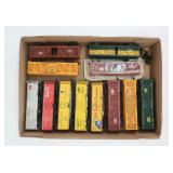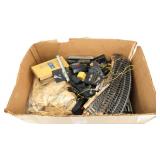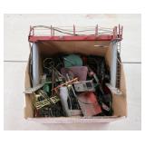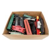 34 LARGE BOX OF LOCOS, CARS, ETC. FOR PARTS OR TO RESTORE