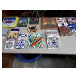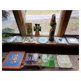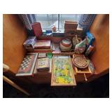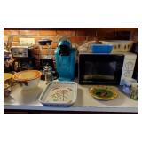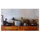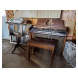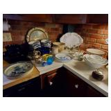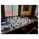Antiques and Collectibles: Vintage Franciscan Apple Earthernware Set 3 Nesting Mixing Bowls, Pyrex, Spode, Turquoise Keurig Coffee Maker, Wedgewood Queensware china dinnerware, Many cups and saucers, Spode, Real Old Willow, Tuscan, Adams, Grindley The Hofburg Flow Blue, Copeland, creamers and tea pots, Porimeirion pottery England, glass globes in many sizes, John Burger Rochester blue flower- repaired, Peaceful Kingdom D. Huntley pottery crock, Burger & Lang jug, Chandelier and ceiling lights, Prestone outdoor thermometer, Pioneer Speaker, Wurlitzer organ, bench, music stand, typewriters, Books, vintage games, many children wood puzzles, yarn, pieces of stain glass, old clay terracotta pipes, Christmas, religious framed art |