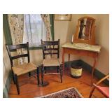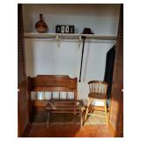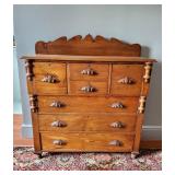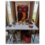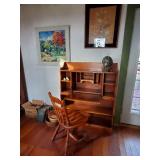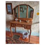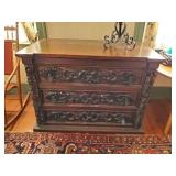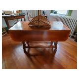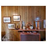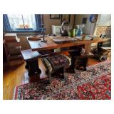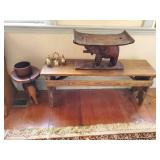 Furniture: Large antique dresser with carved leaf handles, Antique Portable Secretary/Field Desk, Vintage Wooden Portable Writing Desk with Hinged Slope Lid, Cushman maple buffet, Elephant plant stand, elephant stool, oak bench, Vintage Camel Saddle Ottoman Foot Stool Bench, maple paddle arm chair, dressing tables, Harvester table w/ four benches, maple drop leaf table, Maple book shelf/desk with chair, cedar hope chest, many chairs and more.