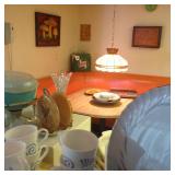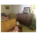 Furniture: Broyhill Brasilia Mid Century - Hutch, Buffet, Dinning room table & chairs, Bedroom dresser, Tall dresser, and bed Clothing: Vintage Men's suits Collectables: Steins Other: Large new flat screen TV |