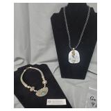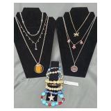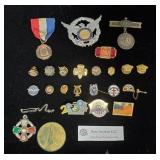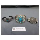 Antique Jewelry: 1939 Copper medical Alert Cuff Bracelet, Belly Dancing Bracelets, Marcasite Pin, Eastern Star Necklace, Religious Pendants, and more