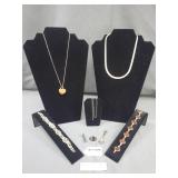 Vintage Jewelry: Sterling Silver, 925 Silver, 800 Silver, Small Amount of Gold, Hebdomas Pocket Watch, Elgin Railroad Pocket Watch, Watch Parts, Benrus Cuff Links, Rhinestone Jewelry, Christmas Pins and Brooches, Christian Dior Pin, and other designer pieces by Trifari, Coro, Sarah Coventry, Napier, Haskell, Hollycraft, Giovanni, Rafaelian, Boucher, Carina, Swarovski, T&G, Weiss, Monet, Yechang, Avon, Givenchy, Strager, Necklaces, Bracelets, and Earrings, Turquoise, Amethyst, Amber, Cameos, Cloisonne, Statement Pendants, and much more.