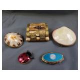 Great Gift Accessories: Vintage Compacts, Perfume Bottles, Many Abalone Shell Pieces, Cigarette Cases, Buckles, Vintage Lighters including an 800 Silver Lighter, Hat Pins and more.