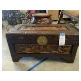 WHAT IS IN THIS AUCTION? This online auction features Carved Wood Trunk, Cracker Barrell Rocking Chair, Salmon Falls Crock Set, Studio Pottery, Small Kitchen Appliances, Day Bed, Electric Lift Chair, Costume Jewelry, Watches, Outdoor Furniture, Drafting Table, Electric Fireplace TV Stand and much more!