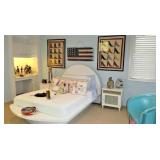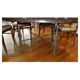 FURNITURE R. Jones custom chenille rolled arm sofa Pair Swaim Art Deco-style mohair club chairs Set of 3 Baker hand planed mahogany nesting tables Custom 2-Tier mahogany coffee table with inset glass top Custom painted metal side table with beveled gold leaf top Hickory Chair Company 6’ long leather bench with brass nail-head detail Biedermeier style side chair with mahogany scroll back Custom 4’ x 9’ marble top triple pedestal dining table Set of 8 Mid Century Teva Italian leather dining chairs Custom 67” round granite top table with iron base Set of 8 Biedermeier style dining chairs with floral upholstery Mid Century tubular chrome “Z” chair with fiberglass seat Custom white laminate full bed Artist made turquoise painted leather chair Antique bench with turned mahogany legs Max Home ultra-suede sofa Set of 3 Hollywood Regency cubes with brass handles Pair of custom oval back mahogany chairs Vintage mahogany side table with leather top Mitchell Gold slipper chair Granite topped games table with mahogany base Set of 4 mahogany armchairs by HBF Oak pressed back rocker White rocker Pair vintage cherry spindle twin bed frames White twin bed frame Primitive painted bench Mahogany desk Red laminate circular side table Vintage mahogany telephone table Burke Mid Century Saarinen-style tulip table with 5 swivel chairs Vintage large rustic pine cupboard Rustic pine coffee table Antique Victorian carved mahogany arm chair Set of 8 leather dining chairs Vintage Child’s school desks Vintage wicker side chair Victorian style mahogany buffet with attached mirror Vintage Brown Jordan patio furniture – 8 pcs