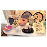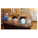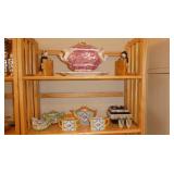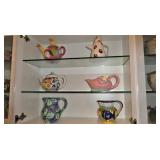CHINA & CRYSTAL Krosno crystal pedestal bowl Hoya crystal Israeli painted glass Antique hand cut crystal stemware Pressed glass stemware Riedel crystal candlesticks Kosta Boda glass vase Swedish crystal cat Verlys 1940s French glass bowl and hurricanes Cup & Saucer collection Vintage Barbara China set Farber Deco chrome/amber glass Royal Staffordshire “Tonquin” China set by Clarice Cliff Deco lustreware porcelain Quimper ceramic bookends Carletonware flambé coffee set Masons red transferware tureen with ladle and under-plate Childs vintage porcelain tea sets Collection of ceramic teapots Collection of vintage biscuit jars Collection of 80s and 90s artist-signed ceramics Collection of vintage style glass juicers Arabia McCoy pottery Fitz and Floyd Rosenthal Fire King jadeite Vintage Blue Ridge China Retroneu “Let’s Eat“ dinnerware Mikasa by Bob Van Allen “Peach Whip“ dinnerware Furio wood chargers Vintage beer glasses Collection of vintage and Italian pitchers
