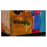 ART Alex Katz (American, b. 1924) “Ada in Sunglasses”, Exhibition Poster/Screenprint Richard DeQuattro (American b 1946) “Aztec Fiesta I & II”, Acrylic on wood Sculptures Jean Dupas (French 1882-1964) “Arnold Constable” hand colored poster J. Saltz (American 20th c) “The Gates of Hell #8” mixed media c 1978 Robert Cole (American, 20th c.) “Jagat”, Acrylic on paper Charles Pompilius (American 20th c) “Nude” ink wash Douglas MacDiarmid (New Zealand, 1922-2020) Native Women I & II, Acrylic on Paper Gisela Magdalena Moyer (German/American, b. 1943) “Parceled Transparency”, Handmade Paper, 1980 Leslie Dill (American b 1950) “Word Crown” mixed media c 1997 Jerome Soble (American, b 1930) “Story Time”, Polished stainless steel sculpture on acrylic base George Baxter (English, 1804-1867) “The Great Exhibition, Exterior and Interior” Hand colored prints Libby Golden (American b 1963) “Rib Cage” Lithograph c. 1967 James W. Eaton (American, 20th century) “Bathing Beauty” elongated wood sculpture Geff Reed (American b 1943) large art pottery bowl Benjamin Moore (American 1952-2001) “Exterior Fold Series” 2 piece glass vessel 1977 Georgia O’Keefe Santa Fe Chamber Music Festival framed poster Mid-Century Artist made woven wall hanging Folk art framed quilts Franks still life floral oil painting on canvas Georgette Zirbes (American 20th c) large studio pottery wall hanging Monet exhibit poster 3 framed 1940s photographs Vintage movie poster reprints Set 3 graduated art pottery vases marked Snars Framed Pittsburgh, Cincinnati, Antique Chicago and St Louis railroad stock certificate
