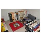 MISCELLANEOUS HUGE collection of VHS tapes DVDs, CDs and Xbox games Books Shark and Sharp upright vacuums Linens – table linens, vintage lace tablecloths, many decorative sets of napkins Musical instruments File cabinets Luggage Electronics Bose wave radio Toys Barbie Dolls Little Tikes doll houses Sportcraft ping pong table Schwinn Airdyne bike