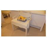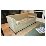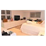 Young Chang G157 gloss black lacquer baby grand piano Pair Interior Crafts tufted mohair sofas with mahogany frames Barbara Barry for Baker double X-Back mahogany framed armchair Piotr Sierakowski for Koch & Lowy Mirage glass top coffee table for Koch & Lowy Cassina U-5 leather wrapped armchairs -set of 6 Arper leather wrapped bar stools w/ chrome foot rail - pair Lella & Massimo Vignelli “Serenissimo” glass top dining table for Acerbis, Italy c. 1980’s Set of 6 Queen Anne-style mahogany armchairs Mid-Century Italian beige leather sofa, armchair, & ottoman H B F Home 57” bench with a damask upholstery and mahogany frame Black and white custom bench Antique burlwood armoire converted to media cabinet Italian leather cube club chairs (pair) with ottoman Antique burlwood secretary with drop front & claw feet Custom King suede upholstered bed and pair of oval cherry nightstands by Vogue Furniture Queen size white bead board bed Ivory 2-drawer chest with cherry top Black executive office chair Vintage whitewashed chair and ottoman Vintage pine armoire Mid-Century tubular chrome dining table with beechwood extension top & 2 leaves 3 Thonet style cane chrome chairs Custom console table with tubular chrome legs and beechwood top Danish modern teak coffee table with laminate top Custom laminate 3-corner coffee table and cube side table White iron bar cart Vintage white wicker sunroom grouping – Table w/ glass top & 4 armchairs, settee, chaise, rocker, ottoman, end table and coffee table Commercial stainless cart Mid-Century white laminate desk, 2 dressers and pair of nightstands DECORATIVE ACCESSORIES, ANTIQUES, & COLLECTIBLES