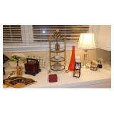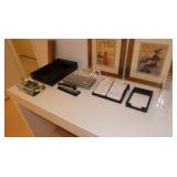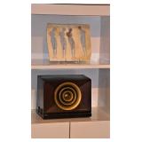 Ed Haugevik (American, b. 1952) “Ascent to Isosceles” , White Enameled Steel Sculpture Red Grooms (American, b. 1937) “Hot Dog Vendor”, Mixed Media Sculpture in acrylic box Therman Statom (American, b. 1953) “Ladder” Glass/wood Sculpture Peter Shire (American b1947)Untitled Abstract, Mixed Media, c. 1986 Harold Linton (American, b. 1947) Ragnarck”, Acrylic on Canvas, 78”x12” Buck Levine (American, 20th c) Abstract wall sculpture, Acrylic on aluminum pieces, c. 1989 David Gerstein (American, b. 1944) “Walking Cat”, Metal Sculpture Peter Max (German American, b. 1937) Lithograph c1971 Judith Rifka (American, b1945) “Pomegranates” Lithograph c1987 Norm Stewart (American/Cranbrook, 20th c.) Lithograph Aloysius Petlinski (Canadian, 1909-1986) “Tree”, Welded nail wall sculpture, c. 1960 Kazimir Malevich “Russian Doll” papier mache sculpture Henry Moore Toronto Art Gallery exhibition poster David Smith Whitney Museum exhibition poster Robert Rauschenberg Guggenheim porcelain plate Yetta “Nude” oil on board c1961 Monte Nagler (American/Michigan, 20th c.) pencil signed print Framed black and white photo prints Large 41” ceramic vessel with a petroglyph style design Artist signed 2 piece sculptural ceramic vases Aluminum unsigned acrobatic sculpture FURNITURE