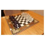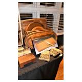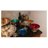 Sterling compacts, pill boxes, and match safes International “Royal Danish” sterling flaware service Dansk/teakwood serving pieces 21” Art glass swirl bowl Vintage Aubusson rug 10’x 13’10” Boehm porcelain Moses, rabbit, and flower Victorian silverplate tea service Alfi stainless ice bucket Large collection of silver plated serveware Vintage Dansk teak pieces Rogers Brothers silverplated flatware Gerber steak knives Supreme cutlery steak knives Pair of silverplated lamps Alabaster chess set Alice in Wonderland chess set Asian carved sculpture Glass mosaic vase Zephyr mobile/chime Vintage RCA Victor radio Mid Century lucite lamp Vintage wood Asian jewelry chests Needlepoint rug Vintage political pin collection CHINA & CRYSTAL