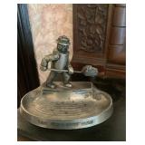 WHAT IS IN THIS AUCTION? This online auction features furniture such as an antique folding stadium seat, tables, Danish dining table and chairs, oak armchair, leather sectional couch, upholstered rocker, corner curio shelf and more, lamps, Churchill Blue Willow pieces, jewelry, Reed & Barton, silverplate, Sharp TV, statues, art prints, old scrapbooks, cast iron, games, rugs, Rigid shop vac, yard care tools and much more!
