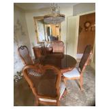 INLAID DINING ROOM SET WITH TWO LEAVES & SIX CHAIRS