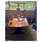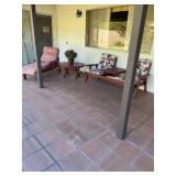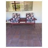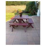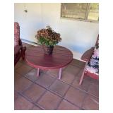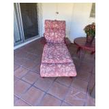 PATIO REDWOOD PATIO TABLE , CHAISE LOUNGE CHAIR AND TABLE