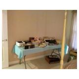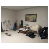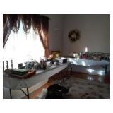 Items being offered include very nice matching reclining sofa and loveseat; matching coffee and end tables; bookcases; desk; dining room table with four chairs and two leaves; rocking chairs; Frigidaire side by side stainless steel refrigerator/freezer with ice and water in door; queen size French provincial 4 poster bed; riding lawn mower; push mower; snow blower; yard tools; patio furniture; vintage drafting table; 1950 Crosley Frigidaire in working condition; ; small kitchen appliances (several brand new); kitchenwares; china and crystal; lots of cookbooks; linens; rugs; decor items; Christmas items; several sets of golf clubs; toys and games; books; pictures and mirrors; 45s and LPS and lots, lots more!!!