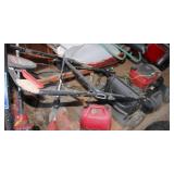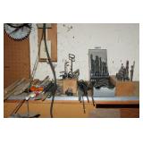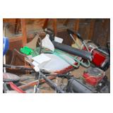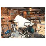 Craftsman riding lawn tractor-like new; Oxy/Act tanks on cart; welding supplies; DeWalt 20V drill in case; Werner aluminum extension ladder; Werner fiberglass folding ladder; Craftsman self-propelled push lawn mower; Toro snowblowers; roll-around air compressor; NIB heavy duty gas generator; several gas-powered weed eaters; wheelbarrow; many yard, hand & power tools; shop & woodworking tools; Starrett precision tools; Craftsman table saw; Black & Decker workmate; Craftsman 8 in. 1/3HP drill press; bench grinder; heavy duty drill bits; pipe wrenches; sanders; saws; drills; smaller drill press; paint sprayer; many Craftsman tools; roll-around tool chest loaded with tools; jack stands; large bench vise; Briggs & Stratton 3HP engine; many NIB & NOS tools; Craftsman electric sawzall; electric worm-drive Skilsaw; air tools; several Shop Vacs; heavy duty floor jack; scissor jacks; pair metal car ramps; metal wheel chocks; levels; tons of hardware; gas cans; extension cords; scrap wire; chemicals; & much more!