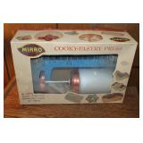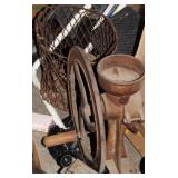 Huge collection of cast-iron skillets & dutch ovens of all sizes-Wagner, Lodge, Griswold, etc.; cast-iron cornbread molds; Red Wing 6 gal. crock; Red Wing crock jug-large; primitives; ice tongs; lanterns; wooden nail keg; machinist’s tool chest; (2) crock bowls; sad irons; coins-some silver; assorted wall art-some original oil paintings; original Harry S. Truman framed photo; wooden butter churn; Fire-King jadeite glass bowl; unusual Fire-King blue glass batter bowl; unusual Fire-King magnolia nesting bowl set; Fire-King lusterware pieces; set of Pyrex “Americana” nesting bowls; large yellow primary colored Pyrex mixing bowl; assorted carnival glass pieces-some Iris & Herringbone; much moonstone & hobnail glass; assorted Fenton glass pieces; Fenton glass slippers; large uranium glass ice bucket; assorted pink depression glass pieces; Van Briggle pottery multi-bud vase; glass nesting hens; Murano & art glass pieces; mid-century California pottery rooster; mid-century table lighters; mid-century glass chip & dip bowl; mid-century glass decanters; mid-century glass ashtrays-some Murano; large mid-century Royal Haegar pottery vase; Lane salesman sample cedar chest; US mint coin bag; several framed mid-century sofa length prints; bronze statue of fishing bear; (2) Bugs Bunny pencil sharpeners-1970’s; large brass geese statue; wooden global carved statues; early violin in case; signed Mexican pottery duck; large set Fire-King “wheat” casserole dishes; sizable amount vintage cameras & equipment; assorted glass oil lamps; much vintage kitchen; JARTS toy in org. box; brass relative humidity gauge; (2) framed watch part wall art pieces; 1970’s Coca-Cola advertising trays; cast-iron milk wagon toy; cast-iron fruit wagon toy; early McDonald’s toys; 1980’s Transformer toys; 1980’s wrestling figures; hand-stitched & machine-stitched quilts; vintage linens; machinists & drafting tools-some German; vintage yearbooks; old photos; tons paper empehra; several wall-mount curio cabinets; miniatures; lot vintage sewing & crafting supplies; vintage Christmas decor-mercury glass ornaments; S/P shakers; brass anniversary clock; Home Interiors figurines; Shania Twain w/ 57’ Chevy Belair wall art; several film projectors; license plates; steer horns; porcelain pitcher & bowl set; sizable amount NOS Fostoria “coin glass;” Christmas caroler bowl molds; Christmas candle blow molds; early Remington typewriter in case; Black Americana flour shaker; early baby buggy; NOS Coca-Cola cups; meat grinders; huge coffee grinder; brass & metal bladed fans; many vintage goods; tons of smalls; & much more!