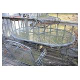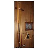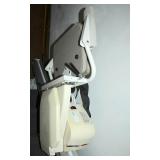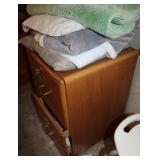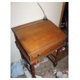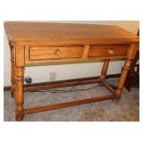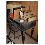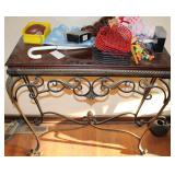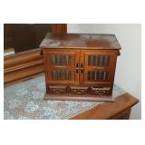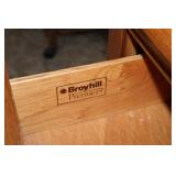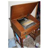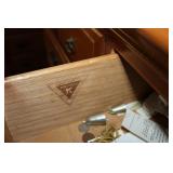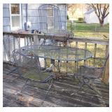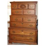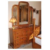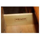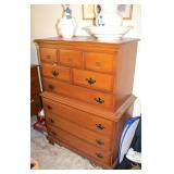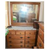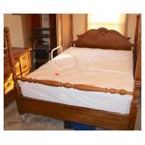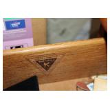 Dark maple display cabinet; globe on stand; early 1900’s hump-back trunk-very nice condition; set of (5) oak Ethan Allen windsor-back dining chairs; oak dining table; oak 2-drawer sofa table; inlaid top lamp table w/ magazine rack; Sumter Cabinet Co. maple bedroom suite set-9-drawer chest of drawers, 10-drawer dresser w/ mirror, bed frame; nice Broyhill Premier oak bedroom suite set-chest of drawers, dresser w/ tri-fold mirror, 4-poster bed frame; (2) 3-drawer nightstands, new electric lift chair; new Montgomery Ward pool table; round Woodard wrought-iron patio table & (4) chairs; oval Woodard wrought-iron patio table & (4) chairs; maple drop-front stereo console-unusual; early spinet knee-hole desk & chair; ornate iron entry table & matching wall mirror; painted chest of drawers; oak 2-drawer filing cabinet; etc.