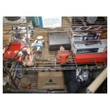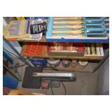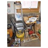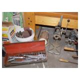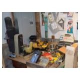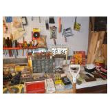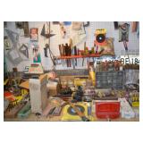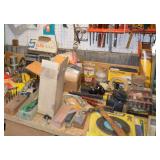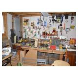 Tools/Workshop Electrical Equipment Sheets of Veneer Power Painter Super Stripper Dovetail Fixture Tool Boxes Workshop Lighting Clock Parts Door Hardware Misc. Hardware of ALL SORTS Electrical Cords Drop Cloths Hand Tools of ALL SORTS Pipe Insulators Clamps Piles and Piles of Wood Nautical Cage Lights Vintage Shop Vac Ladders Saw Horses Work Tables Ratchet Sets Drills/Drill Bit Sets Wood Clamps Circular Saws Table Saw Scroll Saw Craftsman Chain Saw Router/Router Bits and Sets Honing Stones Painting Supplies Chisel Sets Woodworking Tools Files Planers Palm Sander Orbit Sander Electric Planer Tool Chest of Drawers Tile Cutter Gardening Tools