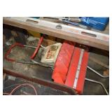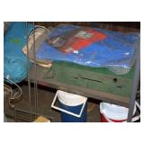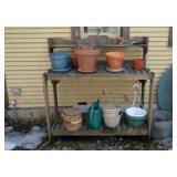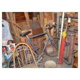 Outdoors/Garage Wood Potting Bench Flower Pots Resin Patio Table/Chairs Tomato Cages Vintage Push Mowers Rakes/Shovels Brooms Work Bench Portable Grill Hardware Chest of Drawers 4 Vintage Bicycles Tools 2 Lawnmowers Snow Blower Leaf Blowers Electric Blower/Vac Old Radio Flyer Wagon Vintage Canoe Range Master Gas Grill