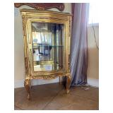 WHAT IS IN THIS AUCTION? This online auction features Gold Curio cabinet with stone top, Ernest Hemingway collection cigar table, Incolay jewelry boxes, Angel statue, 3 piece brown fabric reclining sectional and much more!