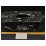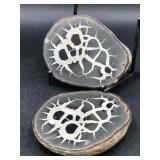 Inventory list: Banded Aragonite 4" Sphere Smoky Quartz Heart Brazil Orthoceras Bowl Morocco 10" Petrified Wood Slab 1lb 12oz Fossil Shark Tooth Megalodon North Carolina 5.29" Moldavite Meteor Impact Glass 1990's Czech Republic 17.8g Moldavite Sterling Silver Pendant Kyanite Silver Necklace w/Matching Earrings Kyanite Brazil 7oz Pyrite Skull 2.5" Pyrite Sterling Silver Ring Size 8 Malachite Sterling Silver Pendant Malachite Pyramid Republic of Congo Tourmalated Quartz Sterling Silver Pendant Tourmaline in Quartz Sphere 3" Peach Barite Blades 8oz Amethyst Sterling Silver Pendant Cactus/Spirit Ametrine South Africa 10oz Picture Sandstone Slab Utah 9.5" x 5" Water-Sculpted Copper Michigan 15oz Copper Nugget Necklace Bornite "Peacock Ore" Mexico 3lb 6oz Labradorite Polished Freeform Madagascar 1lb 5oz Titanium Quartz 3oz Rainbow Obsidian Double Heart Mexico Meteorite Sterling Silver Pendant Meteorite Sikhote-Alin fall Russia 28.3g Rose Quartz Wand 8" Rose Quartz Sterling Silver Jewelry Pendant & Earrings Mookaite Candle Holder 1lb 5oz Septarian Polished Freeform Madagascar 1lb Fossil Oolite Bowl 4.5" Vanadanite on Matrix Morocco 1lb 6oz Fluorite Slab with Owl Carving 7oz Fluorite Wand Double Terminated 4.5" Quartz Geode (Split) Morocco 3lb 12oz Fossil Dinosaur Tooth Carcharodontosaurus Morocco 2.3" Conglomerate Copper Michigan 4.8oz Fossil Trilobite Phacops speculator Morocco Onyx Sphere (Banded Calcite) Pakistan Aragonite Mexico 2lb 4oz Paua Abalone Shell Paua Abalone Sterling Silver Earrings Picasso Marble Egg Utah Nephrite Jade Sphere Burma 2" "Apache Gold" Pyrite Pyramid Shungite Rough 5oz Moqui Marbles Iron Concretions Utah 1lb 13oz Fossil Sandollar (Polished) Madagascar Amethyst Crystal Brazil 11oz Fossil Coral (Polished) Morocco 2lb 13oz Apatite Sterling Silver Pendant Apatite Gemstone 1.19ct Blue Apatite Sphere Mimetite and Calcite Mexico 2020 Find 11oz Moldavite Crystal Czech Republic 2.8g 2 Bi-Color Sapphire Gemstones .27ct/.58ct Opal Sterling Silver Pendant Ethiopia Welo Opal Cabochon .73ct Fossil Shark Tooth Megalodon (Polished) South Carolina 5.55" Moonstone & Peridot Sterling Silver Pendant Peridot 5 Gemstones 4.7ct (total) Malachite Polished Freeform Republic of Congo 12oz Display Stands Carved Wood Set of 3 Amber (variety Copal) unpolished with insect inclusions. Colombia Grape Agate (Chalcedony) Indonesia 10oz Fluorite Candle Holder Serpentine Elephant Framed Moth Titanium Quartz Candle Holder 1lb 10oz Quartz Cluster 5.7oz Rose Quartz Double Heart Fossil Ammonite Dactylioceras Holmzmaden ~ Germany 19 x 15 Cactus/Spirit Amethyst South Africa 13oz Framed Butterfly Danaus plexippus Butterfly Wing Sterling Silver Pendant Titanium Quartz on Display Stand 6oz Red Calcite Mexico 6lb 12oz Banded Aragonite Heart Dish Morocco Pyrite in Serpentine Heart Fossil Ammonite Opalized Madagascar 5" Fossil Coral Agatized Split & Polished Tampa Bay, Florida Petrified Wood Polished Freeform on Display Stand Indonesia 3lb Pyrite Peru 1lb Blue Calcite Mexico 5lb 5oz Angelite Tortoise Old Collection Tri-State Calcite on Sphalerite Treece ~ Kansas 4lb 11oz Amethyst Gemstone Africa 6.73 carats Hematite on Amethyst 1lb 5oz Meteorite Collection 3 Pieces Meteorite Ring Gibeon ~ Africa 1990's Size Fossil Shark Tooth Megalodon South Carolina 4.85" Fossil Trilobite Kettneraspis Devonian Morocco 4oz Rainbow Obsidian Double Heart Mexico Orange Gypsum Crystals Ayres Peninsula S. Australia 14oz Mammoth Collection 1oz Copper Coin & Preserved Hair Petrified Wood 2 Slabs Madagascar Ammonites in Matrix Polished Freeform Morocco 3lb 3oz Petrified Wood Polished Freeform Indonesia 14lb Dinosaur Bone Silver Wire-Wrap Handmade Pendant Conglomerate Stone Sphere Peru 2.5" Copper Ore Slab Michigan 1lb 13oz 3 Star Ruby Cabochons India 10 carat Agate Slab (All Natural) Brazil 7.5oz Fossil Trilobite Phacops rana millen Ohio Fossil Tooth Pleiseosaur 4oz Septarian Split & Polished Morocco Fossil Urchin Gold nugget. .45g Gold crystal on quartz. .13g Gold crystal. .23g Gold crystal. .29g Gold crystal. Eagle's Nest Mine, California. .30g 2" dinosaur bone heart. Morocco Fossil fish, Knightia eoceana. Green River formation, Wyoming. Fossil Trilobite Moroccanites 14oz Honey Calcite on Sphalerite Elmwood, Tennessee 1lb Mermaid Carving Fluorite Amazonite Heart Amazonite Sterling Silver Pendant Amazonite Sterling Silver Earrings Lapis Lazuli Skull 2" Zebra Calcite Mexico 13oz Zebra Calcite Sphere 3.8" Conglomerate Stone Skull Carving Peru 2.5"+ "Splash" Copper 1lb Fossil Eocrinoids Morocco 13 x 11 Fossil Mako Shark Tooth Isurus Bakersfield, California 8oz Fossil Mako Shark Tooth Pendnant ~ Isurus Bakersfield, California Fossil Ammonite in Nodule Dactylioceras Commune England 1lb 4oz Orthoceras Mortar & Pestle Morocco Fossil Dinosaur Tooth Mosasaur in Matrix Morocco 7oz Orthoceras Tissue Box Cover Morocco Framed Butterflies 5 Species Rhodochrosite Polished End Cut Argentina 1lb 14oz Tumbled Charoite 8oz Onyx (Banded Calcite) 6 Glasses Framed Butterflies 3 Species Onyx Vase (Banded Calcite) Pakistan 10" Framed Insect Stick Bug Indonesia Ruby Zoisite Slab 16 x 13 Mahogany Obsidian Freeform 3lb 9oz Onyx Sphere (Banded Calcite) Pakistan 6" Fossil Leaf Ginko Canada 11oz Petrified Wood Sphere on Display Stand Indonesia Agate Bookends All Natural Brazil 4lb 9oz Blue Lace Agate Sterling Silver Pendant Natural agate slab with crystal pocket. Brazil 2 Fossil Shrimp Carpoponeous Lebanon Black Moonstone Egg 3" Labradorite Heart 3" Fossil Coral Dinosaur Bone Polished Freeform with Quartz Pocket 2lb 9oz Fossil Pine Cone in Matrix Germany 2lb 10oz Copper Sphere 1lb 4oz 12 piece 1oz Copper Coin Zodiac Set Amber (Copal) with Insect Inclusions Colombia 99g Fossil Bison Skull Cap with Horns Kansas Shiva Lingam Stone Narada River, India Chess Set Onyx Mexico Rare 1970's Virgin Valley Opal (Wood Replaced) 14K Gold Pendant Nevada Jade Turtle carving Smoky Quartz Crystals 4lb 10oz Smoky Quartz 11 Crystals 7.7oz 2 Mini-Towers Rutile in Quartz Quartz Heart Smok
