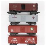 657 2 BILLBOARD REEFERS, 2 BOX CARS W/OBS