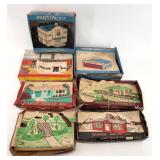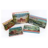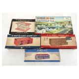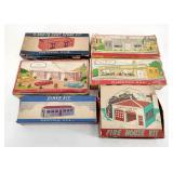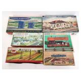598 PLASTICVILLE 6 KITS FACTORY,STATION,BARN,FRT STATION,TV STATION & SIGN SET, OB, N.N.C.