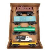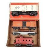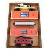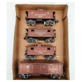 595 LIONEL 2758 PRR BOX CAR & 3 X 2757 CABEESE