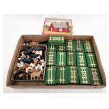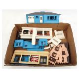 604 PLASTICVILLE BOX OF PARTS, APRT,STATION,CHURCH WALLS, ETC