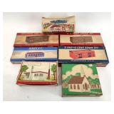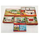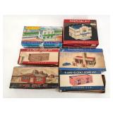 596 PLASTICVILLE 7 KITS, RANCH HOUSE,STATION,5&10,POST OFFICE,FRT STATION,CHURCH & GAS STATION, OB N.N.C