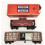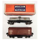 593 LIONEL 3814 OPER MERCHANDISE BOX CAR & 2755 SUNOCO TANK, FRAME IS BENT ON TANK CAR, 1OB
