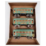 586 LIONEL 3 ROUGH GREEN 607,607 & 608 COACHES, RUST ISSUES